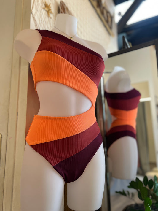 Maillot de bain asymétrique marron chocolat